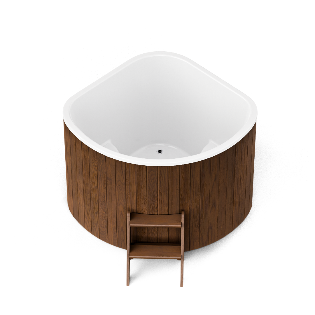 Die ergonomische Form der Kompositschale ermöglicht Verbleib der Person von jeder Körpergröße. Im Außenbereich wird empfohlen, das Badefass mit einem externen POLARSPA-Ofen auszustatten.